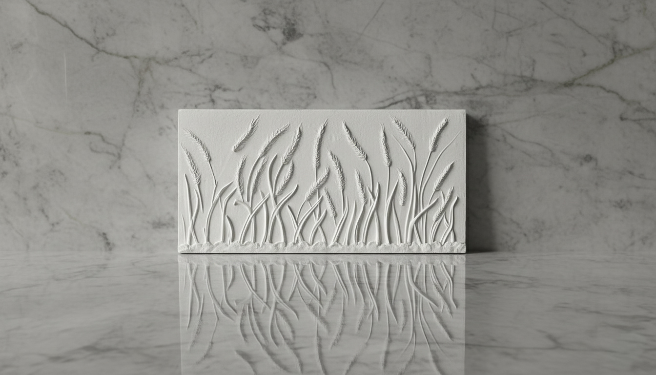 “Golden wheat stalks crafted with textured paste on an MDF board, accented with golden leaves against a warm yellow and golden background. A beautiful piece radiating warmth and elegance. Size: 305×610 mm.”