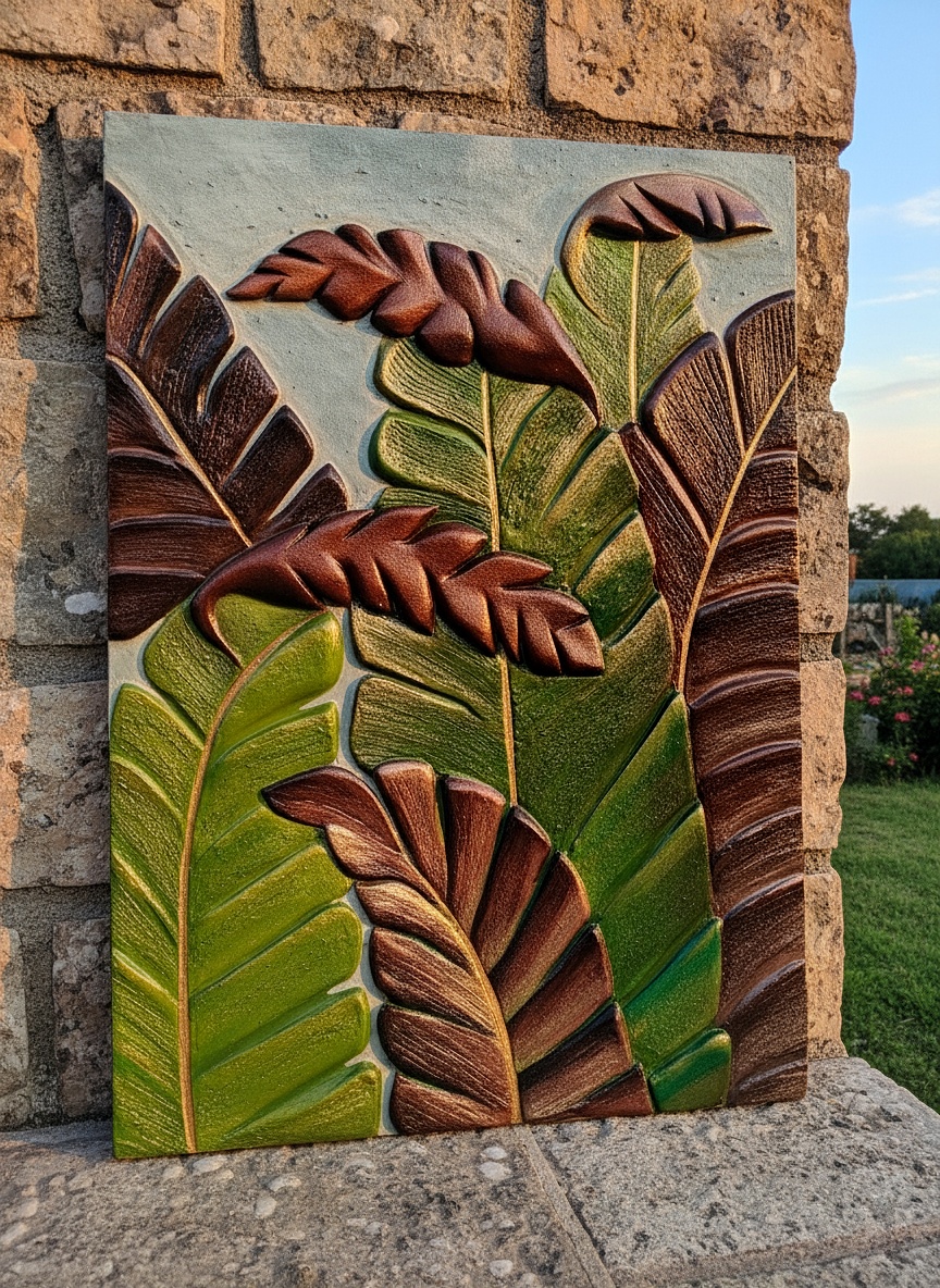 Textured Banana Leaf Art – Smooth Acrylic Texture